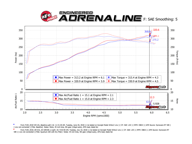 QUANTUM Cold Air Intake System w/ Pro DRY S Filter Ford F-150 15-20 V8-5.0L