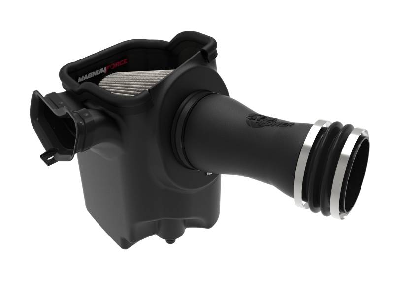 This 9” tall 360-degree radial flow air filter features a 5" flange and our oil-free Pro DRY S media with three layers of synthetic media for maximum convenience. Its progressive layering provides great filtration efficiency and dust holding capacity, while not requiring the use of oils. This media is best suited for street use. Its inverted top makes for more filter surface area, resulting in longer service intervals. The included massive air filter is surrounded by an open-element XLPE (cross-linked polyethylene) polymer housing that minimizes warm engine air for maximum performance. Its open design allows for easy viewing of the air filter and delivers an aggressive Air Intake sound. It utilizes the vehicle's OE air inlet with no additional hardware. This system features a high quality, computer-designed, dyno-tuned intake tube to achieve maximum power gains while maintaining a perfect fit. Its XLPE material is heat soak resistant and extremely durable. The computer designed system utilizes factory mounting locations, minimizing the use of unnecessary hardware, and ensuring a perfect fit every time. Its innovative design makes for a hassle-free, direct bolt-on installation process that requires no cutting or drilling. Stainless-steel clamps are included for strength, and premium silicone couplings allow for ample flexibility. Magnum Force intakes are designed with fewer parts for a fast and easy installation.