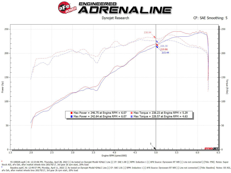 aFe Super Stock Induction System Pro 5R Media 16-22 Toyota Tacoma V6 3.5L 55-10002R