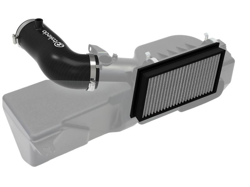 This filter features three layers of oil-free synthetic media and requires no oil during maintenance to provide maximum convenience. Its progressive layering provides great filtration efficiency and dust holding capacity. This media is best suited for street use. Pro DRY S filters are easily recharged with aFe POWER CLEANER. Constructed of 3-ply reinforced silicone, this intake tube is resistant to cracking and hi-temp conditions. With a smooth interior surface, this tube upgrade is engineered to increase horsepower, torque and airflow by reducing turbulence. Stainless-steel clamps for strength and durability.