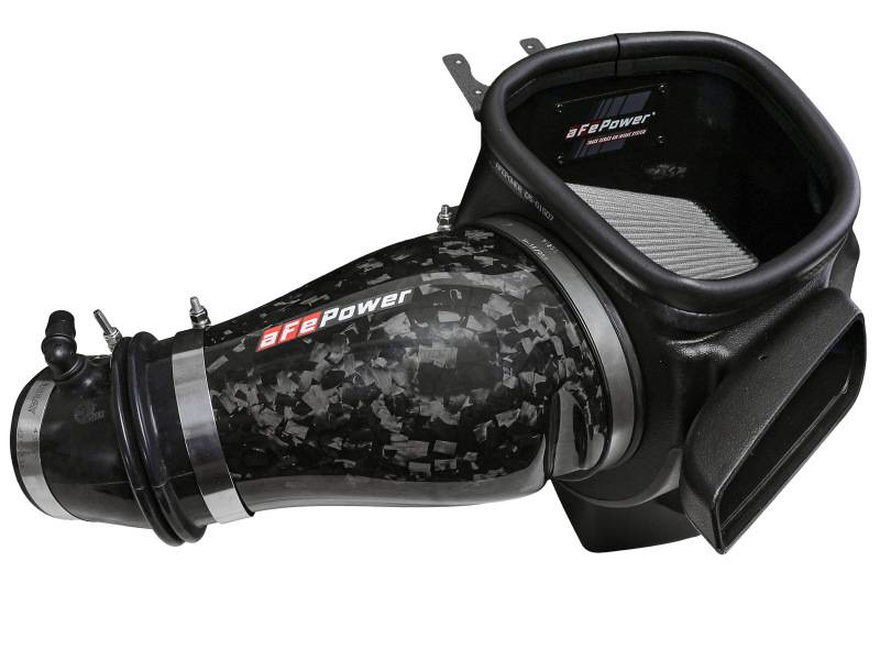 This 7” tall 360-degree radial flow air filter features a 5-1/2" by 7-1/2" flange and our oil-free Pro DRY S media with three layers of synthetic media for maximum convenience. Its progressive layering provides great filtration efficiency and dust holding capacity, while not requiring the use of oils. This media is best suited for street and light off-road use. The included massive air filter is surrounded by an open-element XLPE (cross-linked polyethylene) polymer housing that minimizes warm engine air for maximum performance. Its open design allows for easy viewing of the air filter and delivers an aggressive Air Intake sound. Multiple air inlets bring in cool air when under power without capturing any warm air surrounding the engine. The factory MUA (Multi-Air Unit Actuator) is easily transferred to the aFe POWER housing to guarantee correct crankcase flow, avoiding check engine lights and damaging factory hoses and sensors. The lightweight tube is computer-designed to achieve maximum power gains while maintaining a perfect fit. Manufactured from 100% forged carbon fiber, it features zero fiberglass and is clear-coated for the highest quality construction, inspired from the optional forged carbon fiber interior accents. This is a direct fit intake system that utilizes factory mounting points. All necessary stainless-steel clamps, silicone coupling, and hardware are included. Its revolutionary design, featuring our patent pending filter-to-housing interface, uses half the number of parts of a traditional cold air intake system.