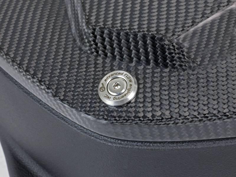 These 7" tall, 360-degree radial flow air filters were specially designed to be installed through the M5's strut braces, maximizing airflow and making for an easy installation. They feature our oil-free Pro DRY S media with three layers of progressively finer synthetic media for maximum convenience. This media is perfect for street use. The air filters are surrounded by heat-resistant XLPE polymer housings. Covers, constructed from 100% twill weave carbon fiber, are secured to the housings with premium aFe POWER branded hardware - making for an aggressive style and simple air filter inspection. Lightweight, high gloss, twill weave carbon fiber tubes direct filtered air from the air filters to the engine. Using computer design software and dyno tuning, they're designed to achieve maximum power gains while maintaining a perfect fit. This is a direct fit intake system that utilizes factory mounting points and requires no cutting or modifications. All necessary clamps, couplings, premium hardware, and a Black Series plate are included. Optional 100% carbon fiber Dynamic Air Scoops (sold separately P/N: 58-10005SC) are available to bring more cool air from the kidney grilles into the intake housings