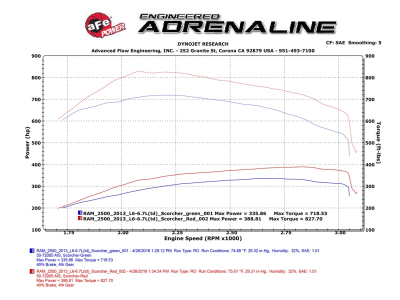 A simple 30 minute install will give you a huge increase in power. The aFe POWER SCORCHER HD Module includes a high quality case & wire harness with factory style connectors for an easy plug & play installation. A LED light switch provides In-Cabin On-The-Fly power adjustments. The 4-Power settings are adjustable with one button and the LED light represent the settings: Stock (Green), Sport (Yellow), Sport+ (Orange) and Race (Red) . This performance module increase turbo boost and fuel pressure. It improves vehicle performance and throttle response. In testing, this module resulted in significant +50 horsepower and up to +90 lbs. x ft. of torque verified by our in house dyno. This quick and easy plug & play SCORCHER HD module adds significant power by altering pressure sensor signals to increase turbo boost and fuel pressure to improve vehicle efficiency, power and throttle response. SCORCHER HD modules features In-Cabin On-the-Fly power adjustment to accommodate any situation. This adjustment is controlled by via LED light switch with a button that can be easily mounted in any location in the cabin. aFe SCORCHER HD modules uses high quality aluminum extrusion black powder-coated enclosure casing and factory style connectors which requires no modification to your factory harness. These factory style connectors, plugs directly into the stock wiring harness connectors and sensors. SCORCHER HD modules are 100% tested for proper protection. These modules work amazingly on stock vehicles and are optimized for maximum performance with use of aFe POWER performance products. This SCORCHER HD module works on Cab and Chassis truck. aFe POWER does not recommend to use with any other tuners or modules. aFe POWER recommends to use the SCORCHER HD module in Sport or Sport+ settings during towing.