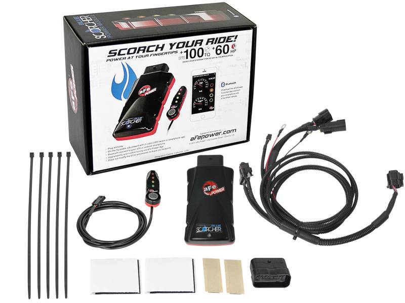 The aFe POWER SCORCHER BLUE Power module is the next generation of Plug and Play electronic module to increase the performance of your vehicle and improve drivability. It is the fastest way to gain safely significant amount of horsepower and torque without modifying or leaving any trace on the Engine Control Unit (ECU). A LED light switch provides in-cabin on-the-fly Power adjustments with different preset modes. Yet the SCORCHER BLUE power module also have the capability to connect via Bluetooth to your iOS or android device and provides power adjustment, gauges for the engine parameters, custom tuning of the different power modes, upgradability to the latest tunes, measure acceleration time and more. The app is downloadable for free on the app store or play store.
