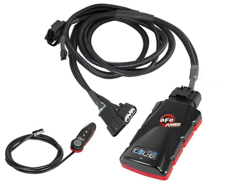 aFe POWER SCORCHER BLUE Power modules are the next generation of plug-and-play electronic module technology. It is the fastest way to safely gain significant horsepower, torque and improve drivability without modifying or leaving any trace on the Engine Control Unit (ECU). The SCORCHER BLUE features an LED control switch for in-cabin, on-the-fly power adjustments with different preset modes. With Bluetooth connectivity you can tap into your iOS or Android device to make power adjustments, custom tune different power modes, view gauges for engine parameters, upgrade to the latest version, measure acceleration times and more. The SCORCHER BLUE Power module increases turbo boost and overall vehicle performance, producing triple-digits horse power and triple-digits torque gains on our in-house dyno. Designed with factory-style connectors, it easily connects to engine sensors for a quick and simple install. The LED control switch can be routed through the firewall into the cabin or connect to the module via Bluetooth with the smartphone app. In-cabin, on-the-fly power adjustments can be made to accommodate your driving needs. Select one of four power settings on the in-cab LED control switch or control the module remotely via the free iOS or android app. The smartphone connects to the module via Bluetooth and displays engine parameters (MAP). This power module has four power settings loaded and identifiable with the LED light on the switch or smartphone app: Stock (Green), Sport (Yellow), Sport+ (Orange) and Race (Red). The SCORCHER BLUE module is Bluetooth 4.0 capable and can connect to most iOS or Android devices. Bluetooth connectivity allows control of the module from you mobile device without the need to run any wires through the firewall. It also displays turbo boost gauge (MAP), allows you to customize each power mode, upgrade to the latest revision and even measure 0 to 60 ΒΌ mile times.