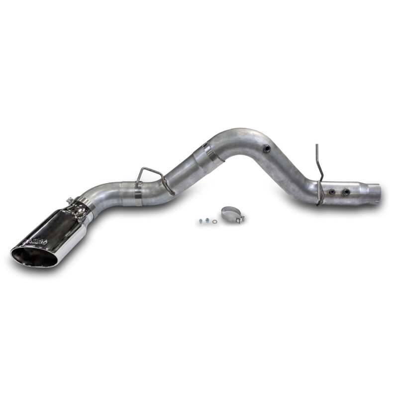Banks 5" aluminized steel constant-diameter DPF-back exhaust system with negative-backpressure SideKick tip. Improves throttle response and fuel economy by lowering backpressure up to 9% at the turbine inlet. Allows the engine to exhale and breathe more efficiently and redirects hot exhaust gas to the side. Prevents trailer meltdown with 15% lower temps behind the tip. Includes huge chrome or Cerakote Black obround SideKick tip. Key Features: 5" aluminized steel constant-diameter DPF-back exhaust system. 15% reduction in exhaust temperature 2 feet behind the tip during regen. Huge 6.5" x 7.5" ob-round slash-cut exhaust tip. 85% less backpressure than stock. Ob-Round Exhaust Tip. 1-Year Limited Warranty
