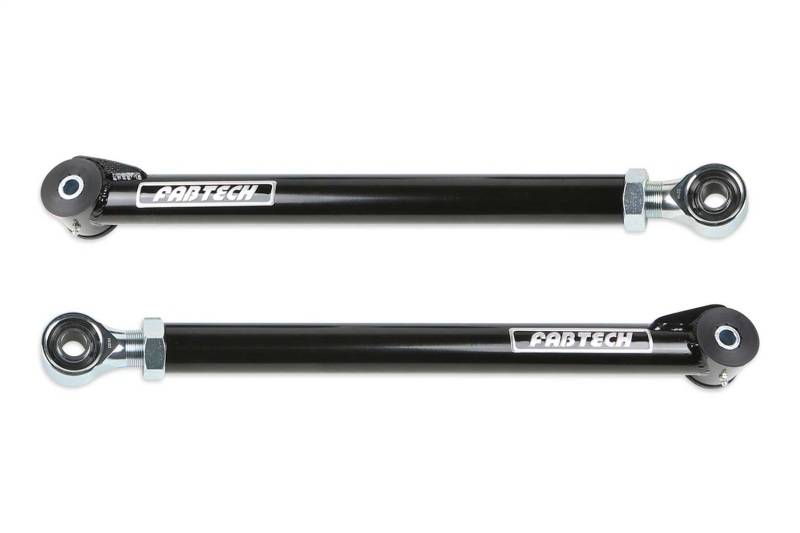 The Fabtech Link Arms are constructed with .313 thick wall steel tubing that is so strong they are guaranteed never to bend. The Link Arms are threaded on one end to allow for length adjustment to change the differential pinion angle for various ride heights. The Link Arms attach to the axle with Fabtech's legendary 5 Ton Joint(R). This massive joint has been proven in the field for over 10 years on 5 ton vehicle applications that have survived the most severe conditions. Fabtech 5 Ton joints(R) come with a lifetime warranty against wearing out for highway or offroad use. In addition to their substantial strength they provide increased rotational angle at the pivot compared to the stock rubber bushing. This provides superior articulation for offroad use. The frame side of the Link Arm receives high-quality urethane bushings to help isolate road noise away from the body structure.