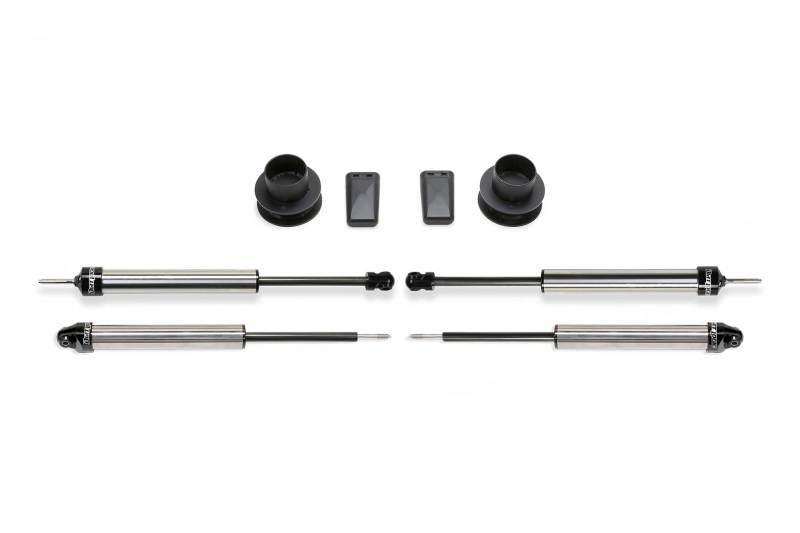 The 2.5in Lift system for 2014 2500 Rams features more than just basic spacers. Dodge designed the front coil springs with a large bow to increase vehicle stability and handling. Unlike other flat spacers on the market, Fabtech's angled spacers retain this important feature preserving the factory ride characteristics. The front shocks are replaced with longer length Fabtech Dirt Logic 2.25 Stainless Steel shocks to allow for full suspension travel while improving the damping of the front suspension. Extended length bump stops are included in this kit to prevent the coil springs from binding at full compression while also eliminating Trac Bar interference. This kit can be removed to return the vehicle to stock. Estimated installation time - 1.5 hrs. No drilling or welding required. Includes rear 2.25 Dirt Logic Stainless Steel shocks.
