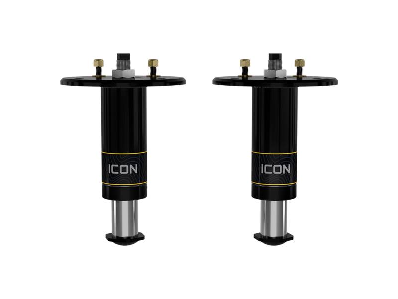 While the factory rear bump stops do a satisfactory job of absorbing impacts on a street driven truck, ICON found that there was much room for improvement during spirited driving in rough, off-road terrain. The ICON Vehicle Dynamics 2021-2023 Ram 1500 TRX Rear Hydraulic Bump Stop System was designed to take the off-road capability of the truck to new levels by significantly improving the bottom-out control of the rear suspension and reducing rear end kick. Like all ICON hydraulic bumps stops, these feature both velocity and position sensitive technology which means that as the shaft speed increases and moves through the travel, the damping force increases exponentially to provide excellent bottoming resistance that won’t negatively affect articulation. This system features 2.5” diameter, one-piece impact extruded and hard anodized aluminum bump stop bodies with an internal reservoir design for improved damping and more consistent, predicable performance than 2.0” diameter, emulsion style bump stops. To compliment the larger body diameter, these bump stops also incorporate heavy duty 1.625” diameter hardened chrome plated shafts.