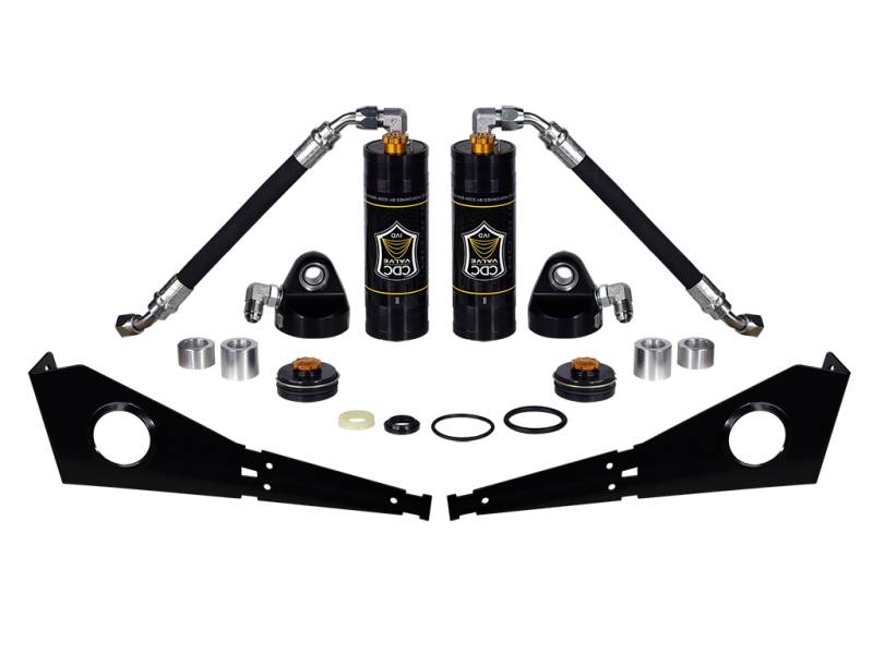 The ICON Vehicle Dynamics Coilover CDCV Reservoir Upgrade Kit is used to upgrade a set of ICON internal reservoir coilovers from a 2005-2023 Toyota Tacoma, 2007-2014 Toyota FJ Cruiser, or 2003-2024 Toyota 4Runner to remote reservoirs with CDC Valves during a shock rebuild. The addition of remote reservoirs will greatly increase shock oil volume and heat dissipation surface area to resist overheating and cavitation under hard use, which can lead to damper fade. ICON's exclusive Compression Damping Control Valves are included for precisely dialing in your suspension performance. CDCV controls fluid flow under compression, allowing you to achieve the perfect tune whether driving on the street, slow-crawling through the rocks or mobbing across the desert at full throttle. This kit includes all required components for the CDCV reservoir upgrade including top caps, reservoirs, reservoir brackets, hoses, CDC Valves, seal kits and extension spacers to also convert the coilovers to extended travel units if desired.