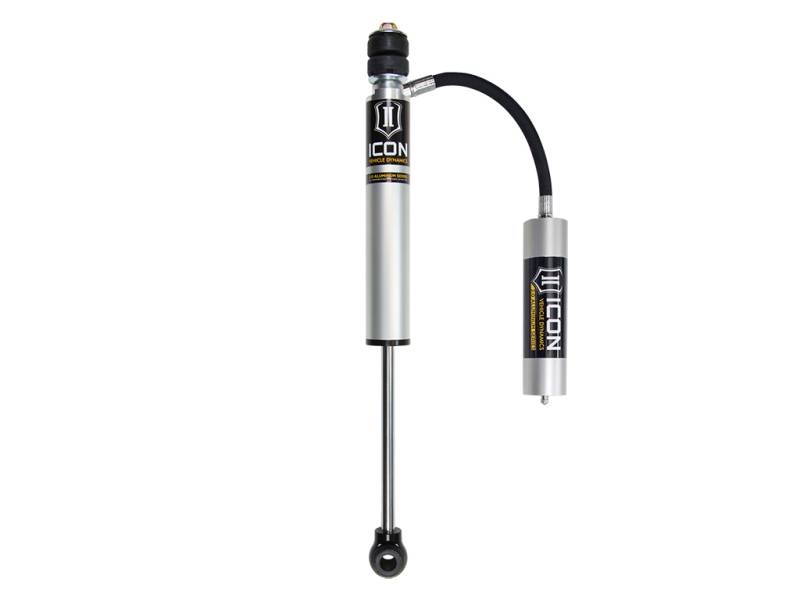 ICON Vehicle Specific (V.S.) 2.0 Aluminum Series shock absorbers are the ultimate in cost effective upgrades, specifically tailored by ICON engineers for your application. The V.S. 2.0 Aluminum Series shocks are a high-quality upgrade for the everyday street driver and weekend warrior looking for improved on and off-road performance. Remote reservoirs greatly increase shock oil volume and heat dissipation surface area to resist overheating and cavitation under hard use, which can lead to damper fade. Like all ICON shock absorbers, V.S. 2.0 Aluminum Series shocks are fully rebuildable and re-tunable. For those using their vehicle in extreme off-road situations, consider the ICON V.S. 2.5 Aluminum Series shock to handle extra abuse and punishment your suspension will need to endure.