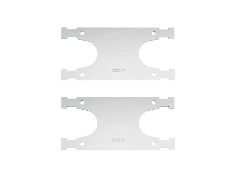 The ICON Vehicle Dynamics 2.5” Reservoir Doubler kit allows for 2 shock reservoirs to be mounted to a single bracket on the vehicle’s frame, allowing more reservoir mounting options for vehicles equipped with multiple shocks per wheel. These CNC laser-cut steel reservoir plates are compatible with standard ICON 2.5 Series shock reservoirs or the dovetail rail mount for ICON finned reservoirs. Zinc plating provides corrosion resistance and clean looking finish.