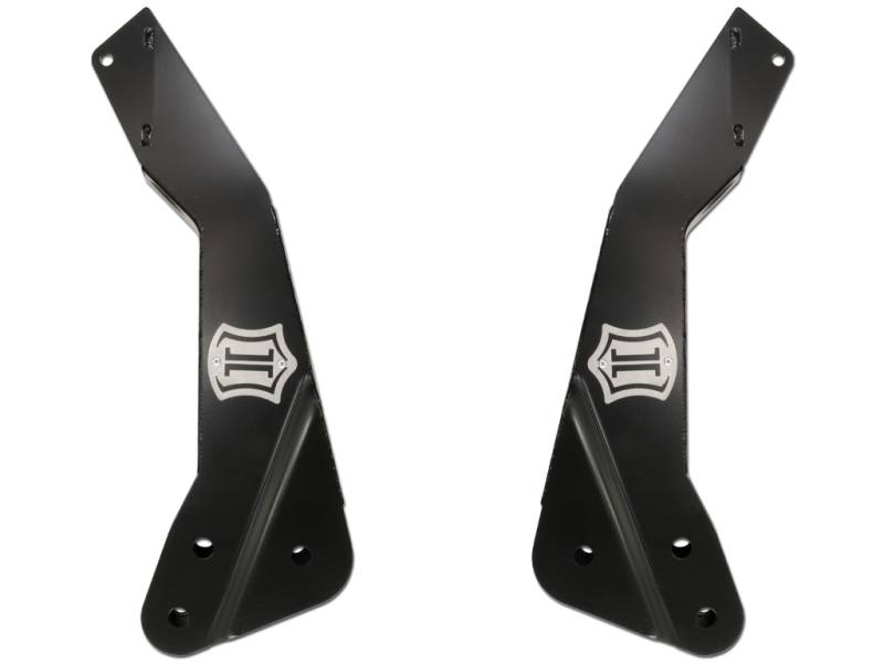 The ICON Radius Arm Drop Kit for the 2011-2016 Ford F-250/F-350 Super Duty 4WD allows the use of the stock or aftermarket radius arms with ICON 4.5”-7” lift suspension systems. This kit consists of fabricated radius arm drop brackets, CNC laser cut and brake-formed from steel plate and engineered to withstand the stresses of aggressive off-road driving. The drop brackets look as great as they perform with a durable semi-gloss black powder coat finish. Wheel with confidence knowing that the brackets are covered by ICON's Limited Lifetime Warranty.