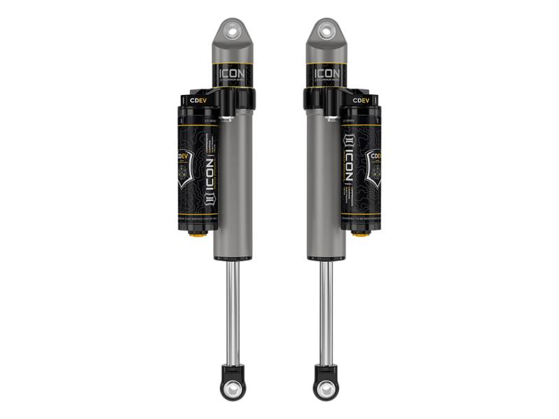 ICON VS 2.5 Aluminum Series shocks are designed and built to give your vehicle outstanding performance off-road and a smooth ride on the street. They feature piggyback reservoirs and are 100% rebuildable/revalveable.