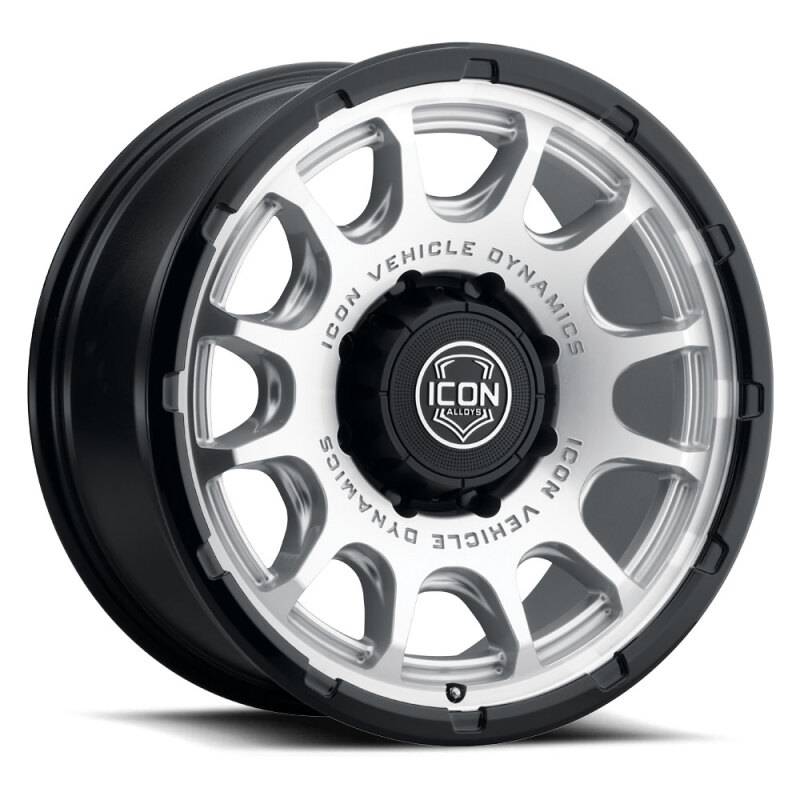 Bring a bold new look to your ride with the ICON Alloys Rancho, a solidly built 20” wheel that will stand up on the street or trail. Available in multiple finishes like stealthy Double Black, slick Satin Bronze with Gloss Black Lip, and an eye-catching Silver Machined with Gloss Black Lip; these wheels will increase both the form and function of your Jeep, truck, or SUV. Staying true to the ICON Alloys approach, the Rancho has been engineered to maximize caliper clearance and optimize wheel position for un-hindered suspension travel and steering function. Backspace dimensions and wheel offset have been strategically developed to reduce scrub radius, improving all-around handling and ride quality and making a set of these wheels the perfect complement to an ICON Vehicle Dynamics suspension system.