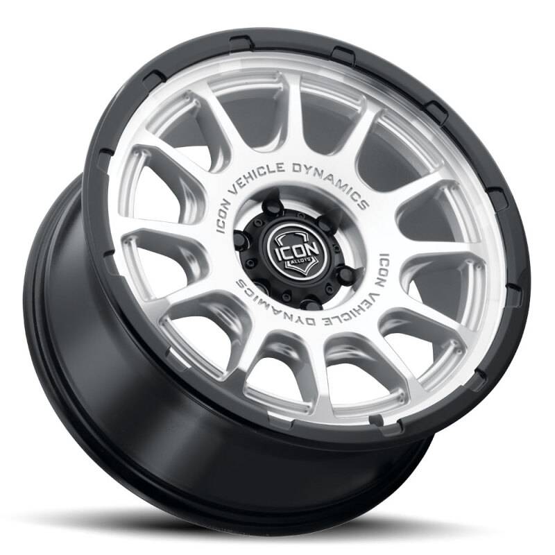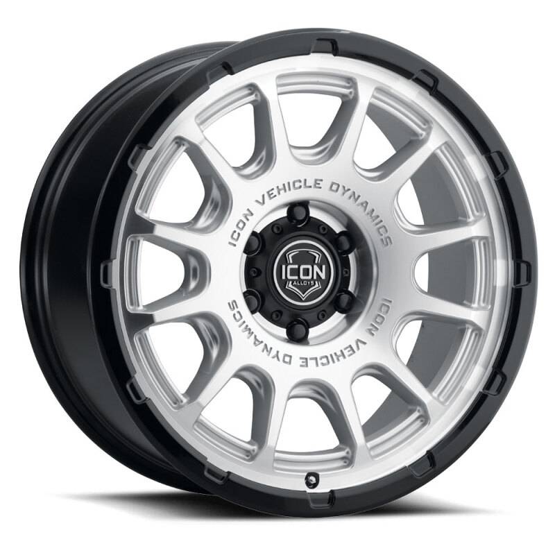 ICON Alloys Rancho 20x9 / 6x5.5 / 16mm / 5.625in BS Silver Machined w/ Gloss Black Lip Wheel 8420909056SMGB
