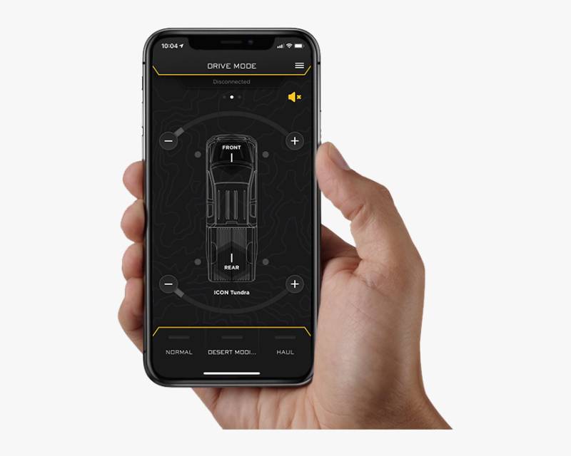 ICON Intelligent Control (IIC) is the computer that monitors, analyzes, and processes data in real-time. Information from the onboard G-force sensor and Gyroscope perform calculations based on algorithms and user-defined settings to predict terrain and wheel position. IIC has the capability to collect information at over 1000 times per second, process the data and make adjustments, then deliver those changes to Compression Damping Electronic Valve (CDEV) in the shock absorbers in under 40 milliseconds. IIC also works as a data driver to connect the user to ICON’s proprietary mobile App interface for monitoring and adjusting shock settings. The IIC is mounted to the 2017-UP Ford Super Duty and the 2015-UP Ford F-150 using application specific mounting brackets, hardware and wire harnesses, ensuring an easy and clean looking install.
