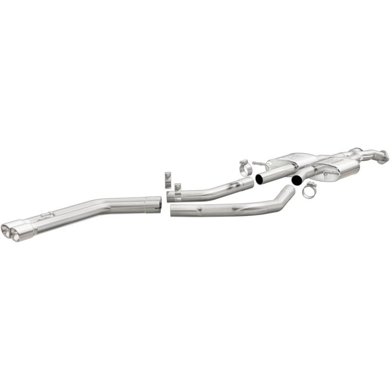 - The MagnaFlow 2004 Pontiac GTO Street Series Cat-Back Performance Exhaust System 15868 brings out the personality of your 5.7L 2004-2004 Pontiac GTO with our signature resonant, powerful engine tone and dyno-proven performance. Thanks to its fast-flowing, mandrel bent 2.5in. main piping and 2 Straight-Through mufflers ending in a Dual Straight Driver Side Rear exit with 3in. Polished Welded-On Double Wall Angle Cut Rolled Edge tips, this Pontiac GTO exhaust kit has the performance chops to match its sporty sound and appearance. Upgrade your ride to the next level with an exhaust that has the pipes to put other Pontiac GTO's to shame. With this system your vehicle will be producing Moderate exterior and Mild interior sound levels while leaving other cars and trucks feeling envious at every stoplight. Exhaust kit 15868 features a cat-back layout that replaces your ride's stock exhaust components from near the catalytic converter on back. Extensive 3D scanning during development has resulted in a direct-fit design that you can easily install yourself. 15868 is produced using CNC precision robotic manufacturing techniques and is backed by MagnaFlow's 1-year limited finish warranty and limited lifetime construction warranty.