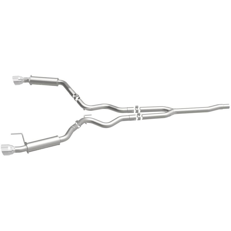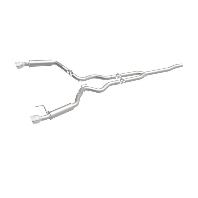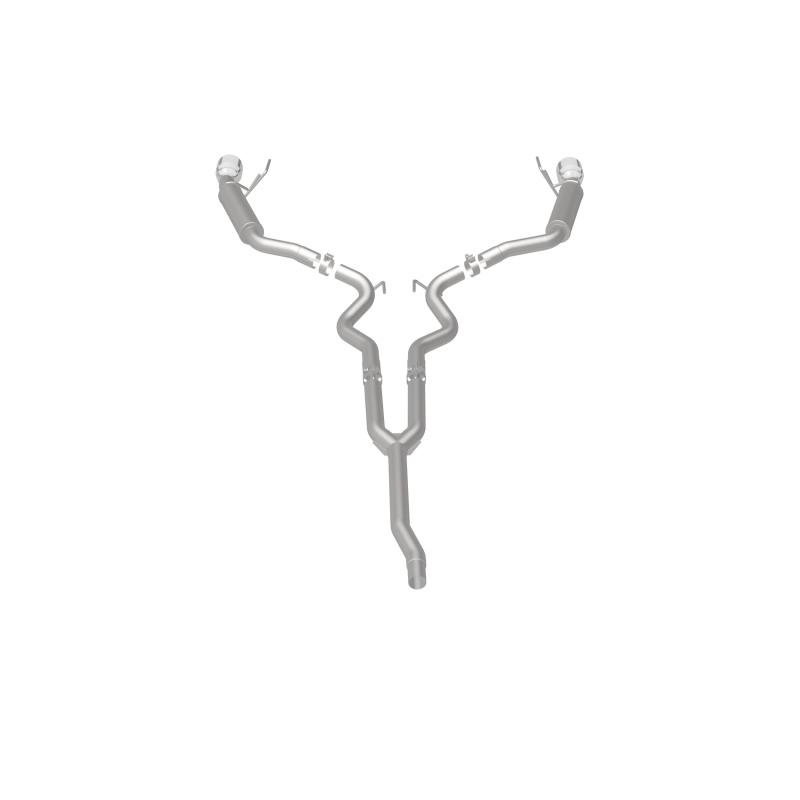 The MagnaFlow 2015-2023 Ford Mustang Competition Series Cat-Back Performance Exhaust System brings an aggressive, attention-grabbing edge to the deep resonant exhaust note we're so well known for. This Ford Mustang cat-back exhaust kit is designed to enhance your 2.3L 2015-2023 Ford Mustang with dyno-proven performance made possible thanks to fast-flowing mandrel bent 2.5in. diameter piping that passes 2 Straight-Through mufflers ending in a Dual Split Rear exit with 4.5in. Black Coated Welded-On Double Wall Angle Cut Folded Edge tips featuring a sporty black powder-coated finish. The direct-fit design allows for an easy, do-it-yourself installation process. Exhaust system 19256 is engineered to make your Ford Mustang's engine produce Moderate interior and Aggressive exterior sound levels, befitting its competition-oriented design. 19256 is made of 100% durable and corrosion-resistant stainless steel and produced using CNC precision robotic manufacturing, all backed by MagnaFlow's 1-year limited finish warranty and limited lifetime construction warranty. Please check to ensure compliance with local noise regulations.