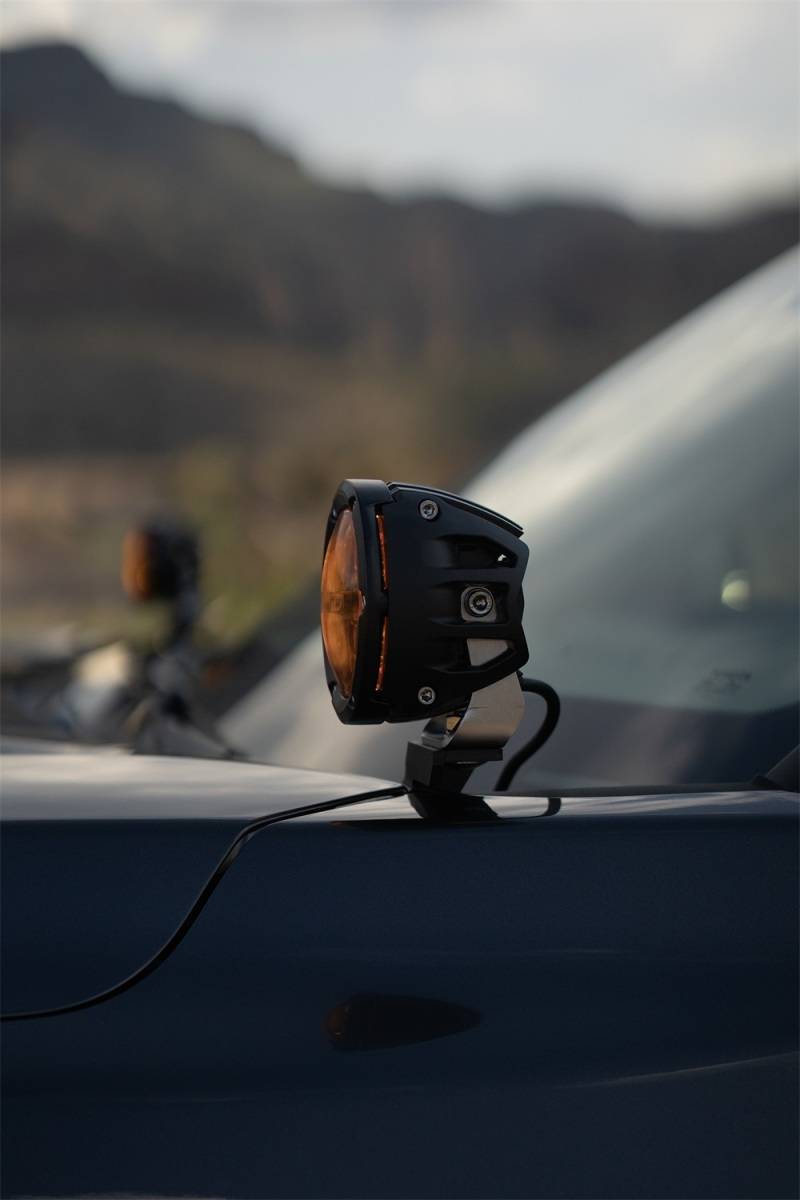 Rigid's Amber PRO Edition 360-Series 4-inch is a powerhouse when you need to cut through dust, features an amber backlight and a spot optic that projects up to 3,060 raw lumens, and is protected by an aluminum housing. Good visibility is necessary when out on the trail, overlanding, or racing! RIGID's Amber PRO Edition was developed specifically for high dust, smoke, and other low-visibility conditions. The amber lighting provides superior performance in adverse lighting conditions thanks to the unique attributes of the human eye that make it easier to process light in longer wavelengths. This reduces glare, enhances definition, and improves contrast, allowing you to see farther than traditional white lighting. It features a blacked-out circuit board, prominent RIGID branding, and a limited lifetime warranty making it one of the most robust and valuable round lights on the market. RIGID's Amber Pro Edition makes it easier than ever to Own The Night.